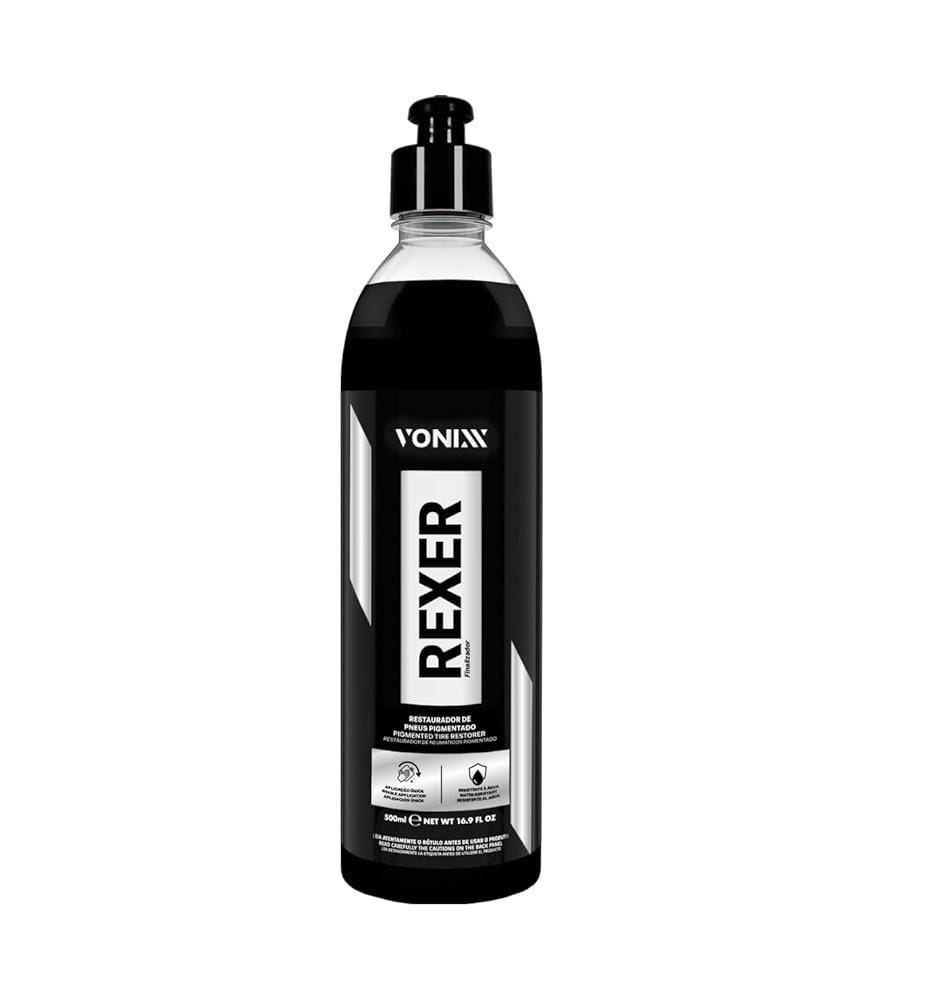 O Rexer Vonixx é um restaurador de pneus pigmentado de alta performance, desenvolvido para devolver o preto intenso, proporcionar brilho duradouro e formar uma camada protetora resistente à água já na primeira aplicação.