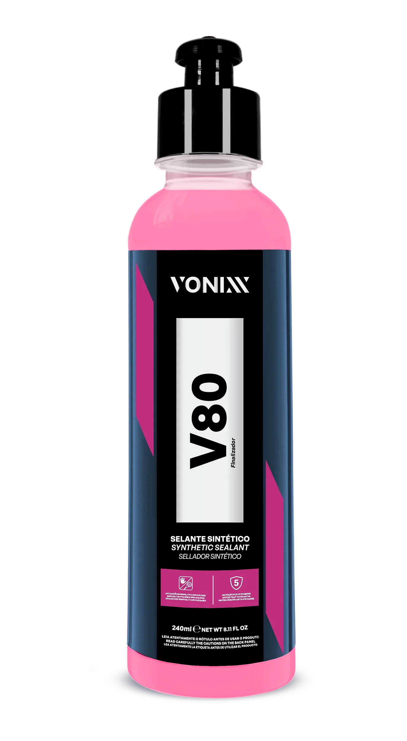 O V80 Selante Sintético da Vonixx é um produto automotivo que oferece alta proteção, brilho intenso e efeito hidrofóbico (repele água) à pintura, funcionando também como um limpador suave (cleaner) para remover pequenas imperfeições, com durabilidade de até 5 meses, sendo aplicável manualmente ou com politriz, após limpeza e descontaminação completa do veículo.
